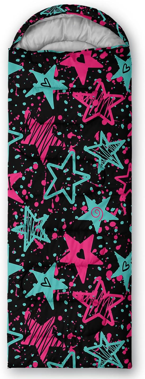 - 【Fits For 3 Seasons】: Size - 31 by 90 inches (W x D). Our Graffiti Style Stars sleeping bag can be used in 3 seasons with a design temperature of 32℉-77℉(0℃-25℃). These Cartoon Stars bags also have a weather resistant waterproof design to keep you warm and prevent you from any dampness.