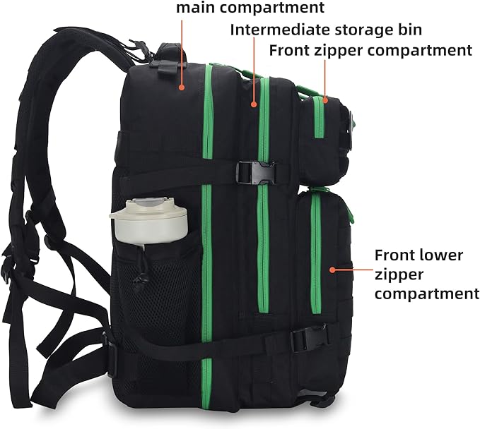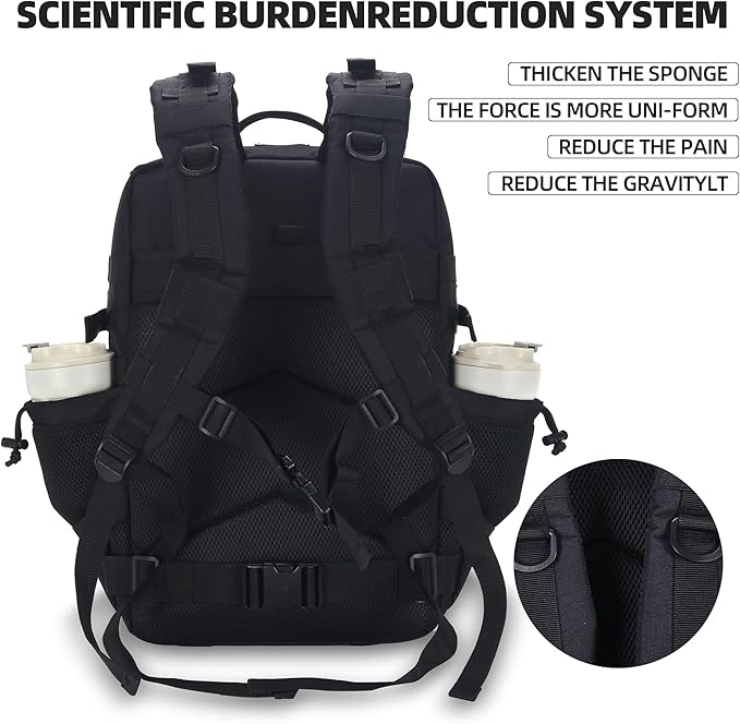 - MULTIFUNCTIONAL COMPARTMENT- With a spacious main compartment, multiple front and side pockets, and a separate laptop sleeve, this tactical backpack can hold a wide range of gear, from clothing to electronics, for a three-day assault mission or other outdoor activities.