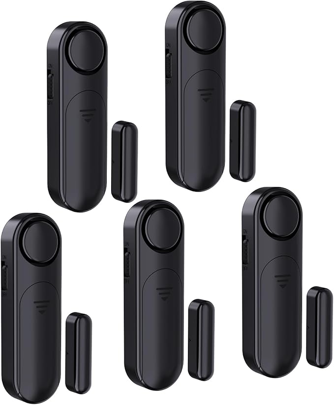 5-Pack Window Alarms for Home Security, 120dB Door and Window Open Sensor Chime for Kid Safety, Pool Safety, Sliding Door, DIY Protection, Easy Installation,Ideal for Home,Garage,Apartment,Black