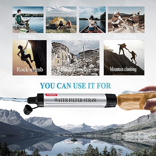 - 4-Stage filtration: Timain water filter straws use an advanced 4-Stage filtration system, the main filtration material ultrafiltration membrane, with a filtration accuracy of 0.1 micron. This design effectively can filter 99.9999% harmful substances and E.Coli and microplastics from surface water. You can safely enjoy clean drinking water.