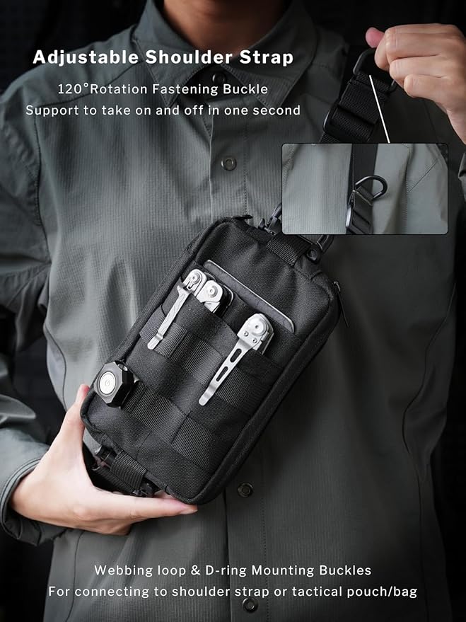 - 【Quick Release & Adjustable Shoulder Strap】: The adjustable shoulder strap can keep you comfortable by adjusting the length of the strap. The quick release buckles on the shoulder strap can be easily detached by pulling out to switch between multiple carry modes, such as being a chest bag, waist pack, crossbody bag, and can just be used as an EDC pouch by removing the shoulder strap.