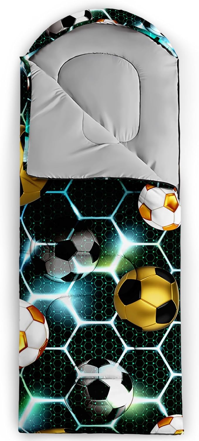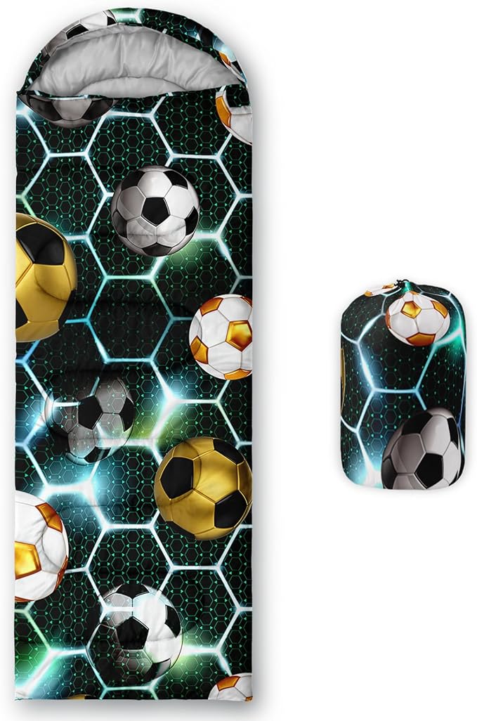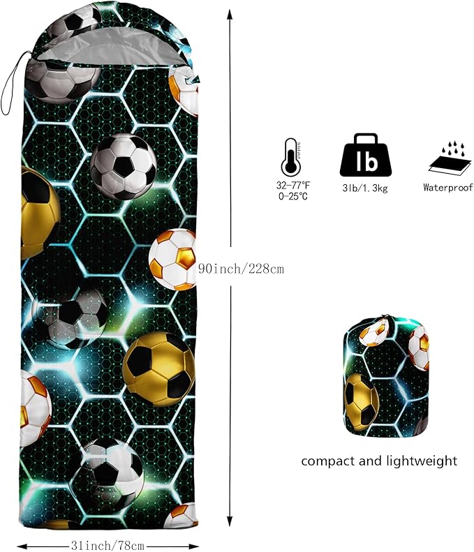 - 【Fits For 3 Seasons】: Size - 31 by 90 inches (W x D). Our Soccer Ball Sports sleeping bag can be used in 3 seasons with a design temperature of 32℉-77℉(0℃-25℃). These Sleeping bags also have a weather resistant waterproof design to keep you warm and prevent you from any dampness.