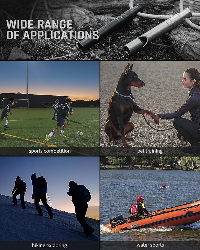 - Multifunctional Whistle: The titanium whistle is versatile and perfect for outdoor use, such as survival, camping, hiking, lifesaving, pet training, refereeing, coaching, boating rescue signals and more. Our whistles can attract the attention of others from a long distance and make you feel safe and protected.