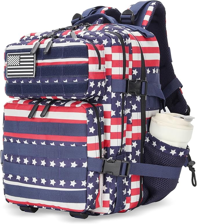 25L Tactical Military Backpack Small Travel Backpack for Men and Women Assault Pack Bug Out Bag Molle Daypack Gym Backpack with Bottle Holder (Flag)