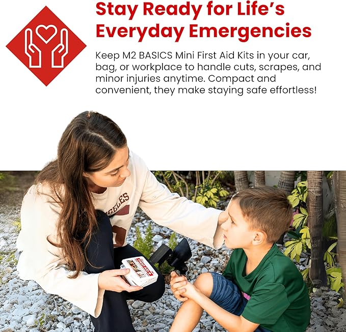Bulk 10-Pack Mini First Aid Kit Bundle (500 Pieces Total, 50 Pieces Per Kit) – M2 BASICS First Aid Kits for Car, Vehicles, Travel, Home, Charity, Donations – Compact Emergency Medical Supplies