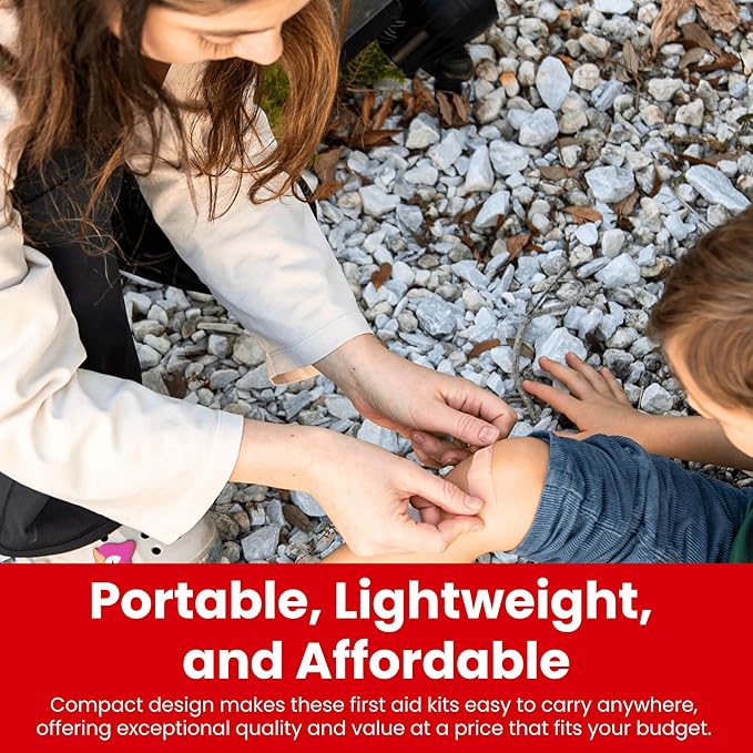 - Compact & Portable: Each lightweight kit fits in glove boxes, backpacks, purses, or desks. A vehicle first aid kit or travel-size med kit that’s always nearby, providing dependable coverage without taking up space.