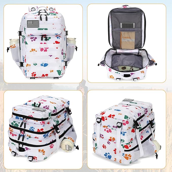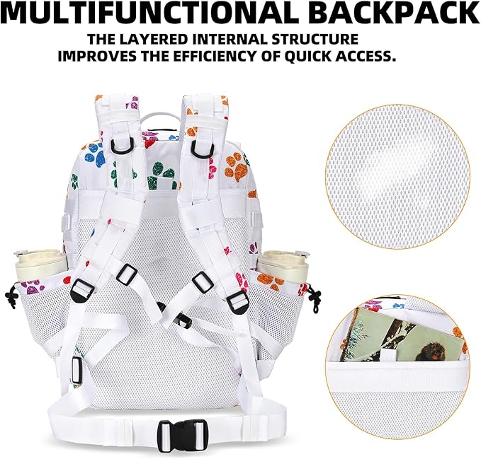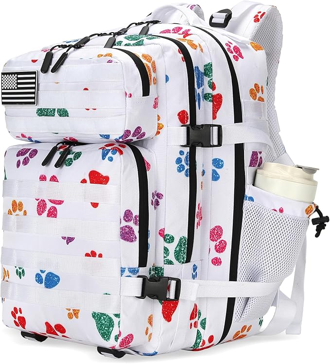 25L Tactical Military Backpack Small Travel Rucksack for Men and Women Assault Pack Bug Out Bag Molle Daypack Gym Backpack with Bottle Holder (Cat Paw)