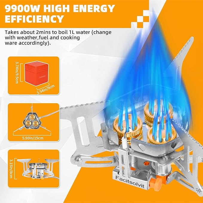 - Powerful & Windproof Performance: With an impressive 9900W output, this stove heats quickly—boiling 1 liter of water in under 2 minutes. Its windproof design maximizes combustion efficiency, saving fuel even in challenging outdoor conditions.