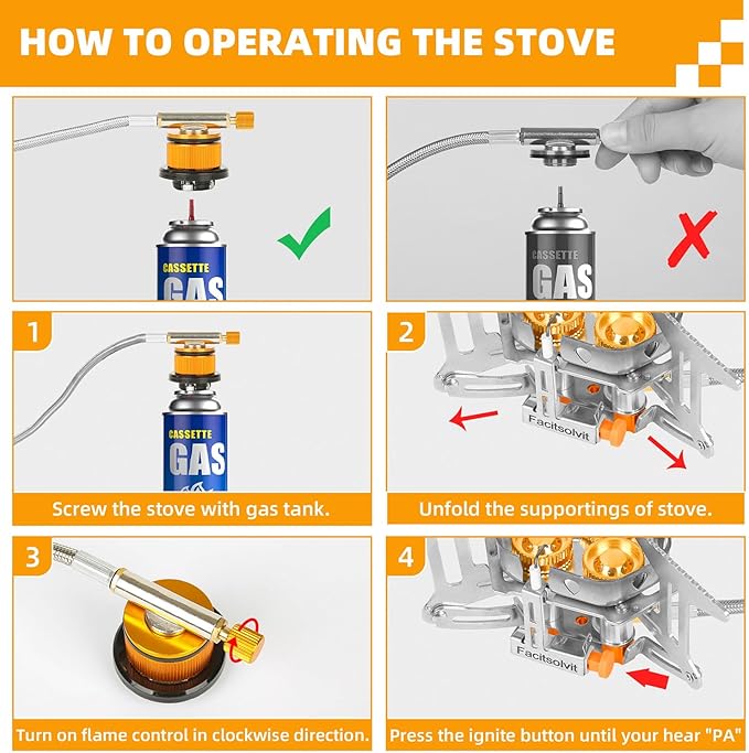 - Upgraded Piezo Ignition & Flame Control: Featuring an enhanced ignition system with a protective baffle, starting the stove is effortless. The adjustable flame control knob allows precise heat customization for all your cooking needs.