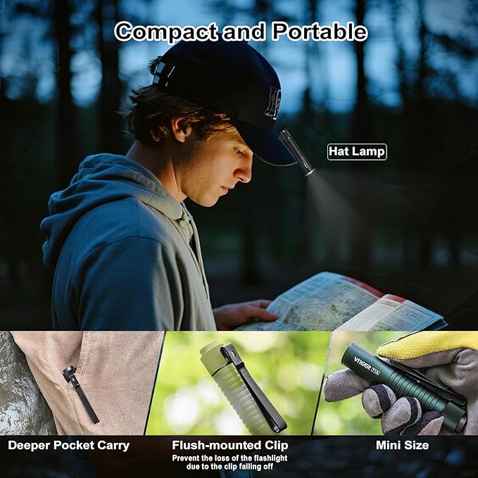- Small Yet Super Bright:VTIGER T1A delivers an incredible output of up to 1300 lumens and a beam distance up to 170 meters / 558 feet. But its size only: 3.8 in * 0.7 in,its weight only 2 oz. Without a doubt, it is a perfect EDC flashlight that meets your daily needs