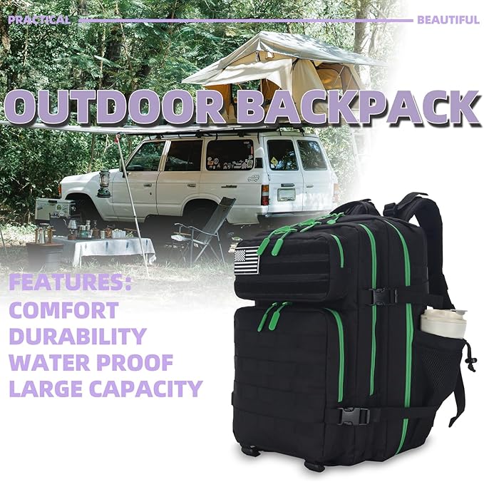 - 【High-Quality Backpack】The 25l tactical backpack is made from 900D oxford and water resistant PVC lining, ensuring your belongings stay safe and dry during outdoor adventures or travels. This military tactical backpack is perfect for friends, family, or loved ones who enjoy hiking, traveling, camping, or gym workouts.