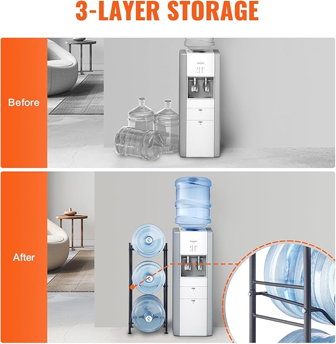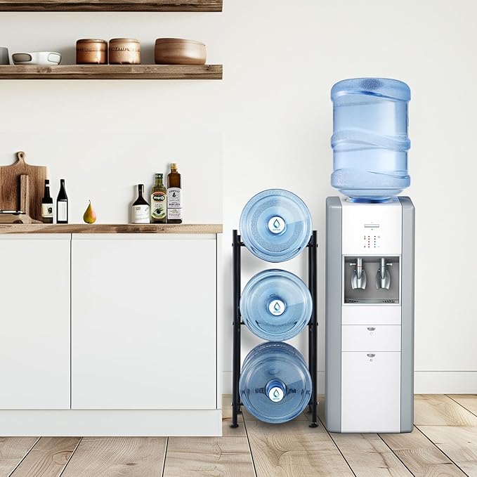 - Versatile Use: The water jug stand is ideal for living rooms, storage rooms, kitchens, garages, food pantries, closets, laundry rooms, gyms, and offices. This rack helps you organize and maximize space efficiently.