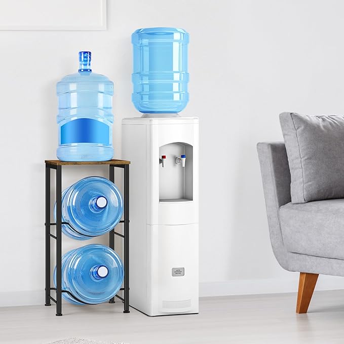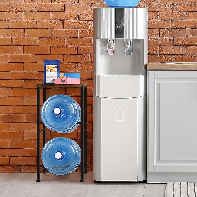 5 Gallon Water Jug Holder with Top Shelf, 2 Tier Water Dispenser Rack Stand 5 Gallon Water Bottle Storage Organizer for Kitchen, Home Office, Living Room, Rustic Brown