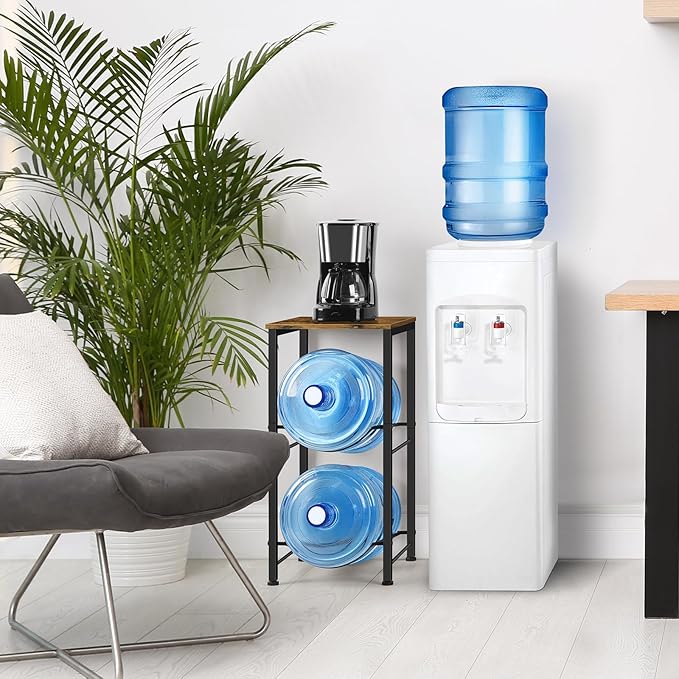 - 【5 Gal Water Jug Holder with Shelf】: More than a water jug holder, this 5-gallon water bottle holder stand features an MDF top shelf measuring 13" L x 13.4W". Ideal for placing your coffee station, serving as a versatile pantry table, storing essential kitchen items, or showcasing your preferred decorative cups.