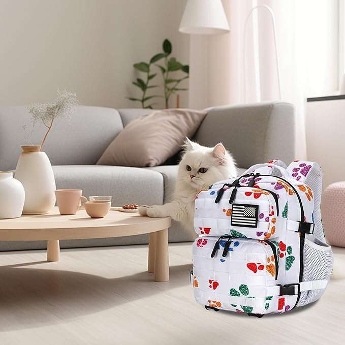 9L Mini Tactical Backpack for Men and Women, Tactical Backpack Small for Hiking, Small Tactical Bag (Colorful Cat's Paw)