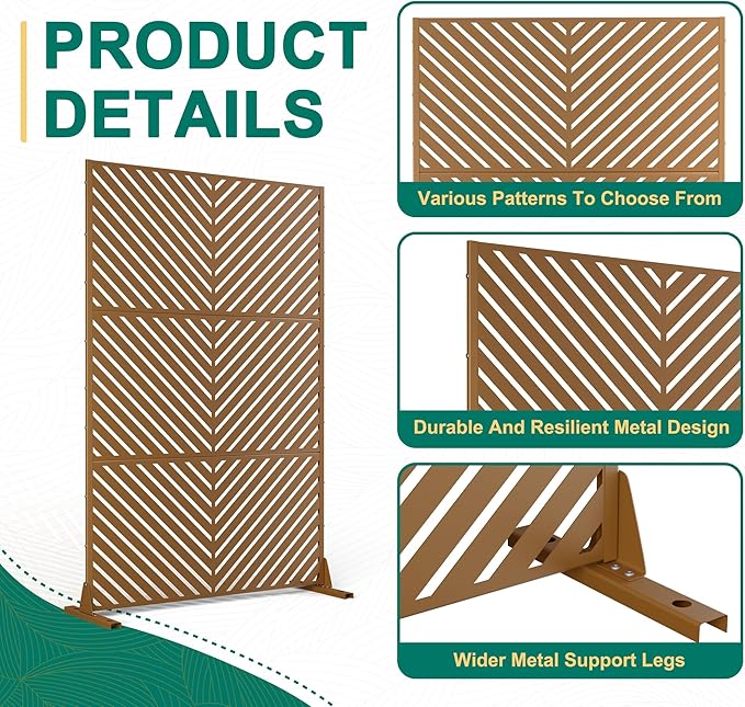- Durable Metal Construction: Expertly crafted from premium-quality materials, this outdoor privacy screen is engineered to withstand the harshest outdoor conditions. The robust metal construction is resistant to rust, corrosion, and fading, ensuring that it remains a reliable and durable solution for maintaining privacy in your outdoor living space over the years. Its sturdy build guarantees long-lasting performance, even in extreme weather.