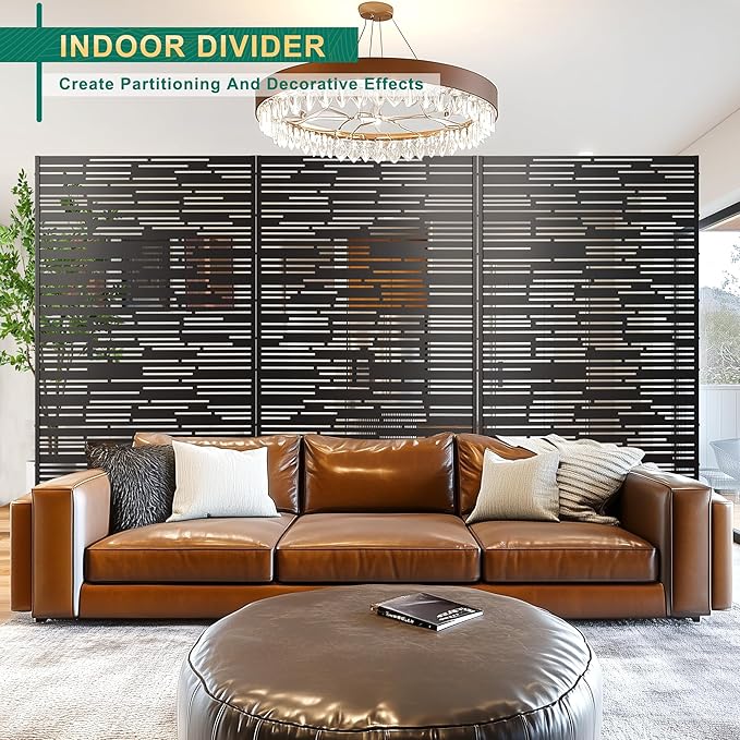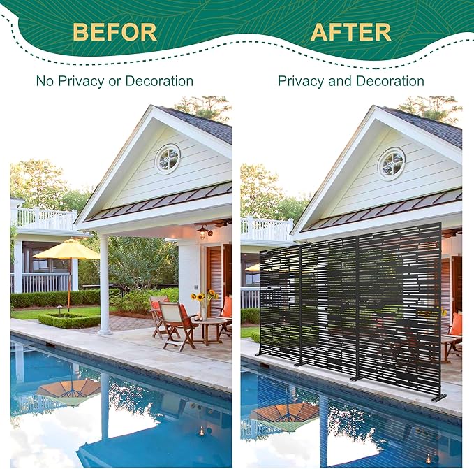 - Durable Metal Construction: Expertly crafted from premium-quality materials, this outdoor privacy screen is engineered to withstand the harshest outdoor conditions. The robust metal construction is resistant to rust, corrosion, and fading, ensuring that it remains a reliable and durable solution for maintaining privacy in your outdoor living space over the years. Its sturdy build guarantees long-lasting performance, even in extreme weather.