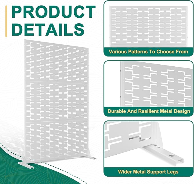 - Durable Metal Construction: Expertly crafted from premium-quality materials, this outdoor privacy screen is engineered to withstand the harshest outdoor conditions. The robust metal construction is resistant to rust, corrosion, and fading, ensuring that it remains a reliable and durable solution for maintaining privacy in your outdoor living space over the years. Its sturdy build guarantees long-lasting performance, even in extreme weather.