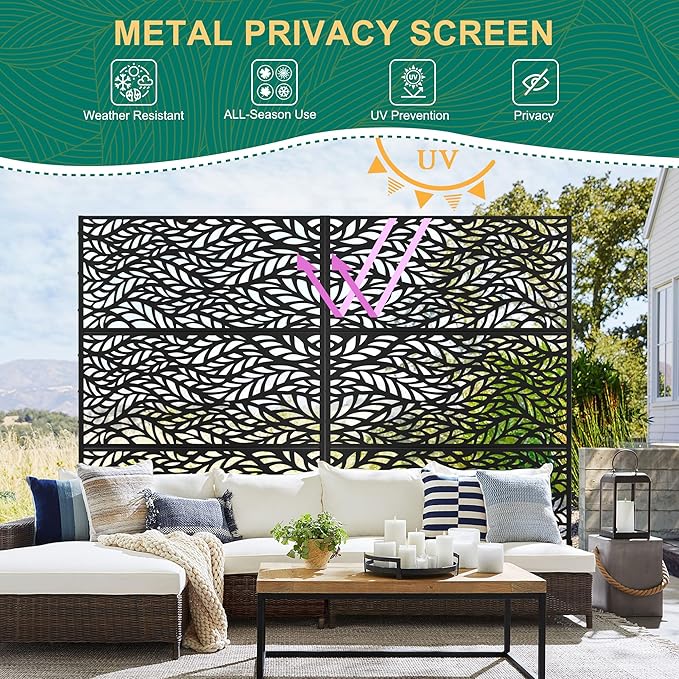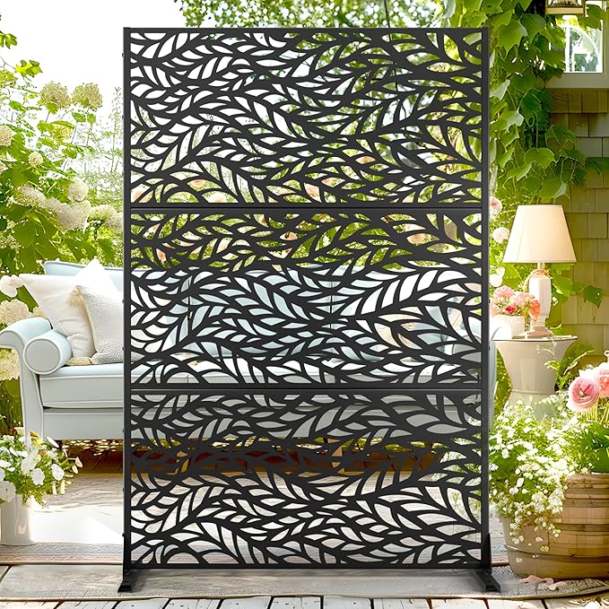 - Durable Metal Construction: Expertly crafted from premium-quality materials, this outdoor privacy screen is engineered to withstand the harshest outdoor conditions. The robust metal construction is resistant to rust, corrosion, and fading, ensuring that it remains a reliable and durable solution for maintaining privacy in your outdoor living space over the years. Its sturdy build guarantees long-lasting performance, even in extreme weather.