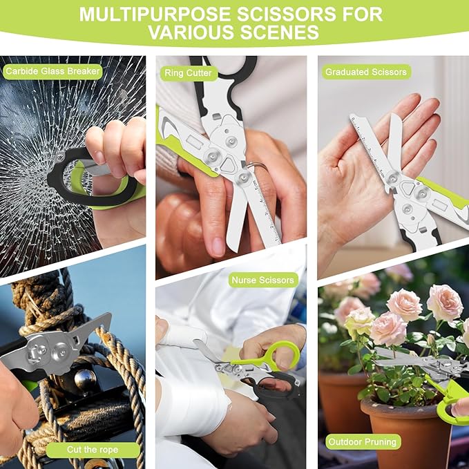6 in 1 Multifunctional Combination Tool, Folding Retractable Emergency Shears, Outdoor Camping Tools, Seat Belt Cutter, Oxygen Cylinder Wrench, Complimentary Adjustable Wrench (dark green)