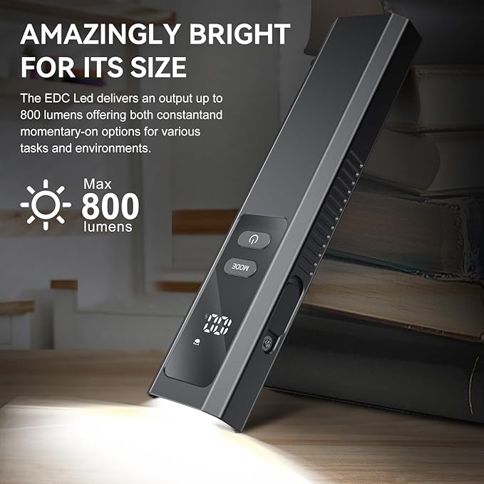 - 5-in-1 Light Modes: Pocket Flashlight Provides an impressive 800LM White Light maximum brightness for excellent lighting. Switch between UV light, flashlight, reading light and Alarm flashing red&blue lightswith One button—it’s built for adventures and emergencies alike