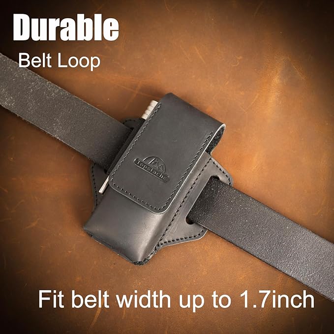 - Built to Last: Leather multitool case made of Crazy Horse Leather, can hold leatherman multitool. Crazy Horse Leather with fine and tight stitching, smooth and scratch-resistant surface, comfortable to use, and long-lasting. This EDC belt organizer fits belts up to 1.7 inches wide and is comfortable to wear for everyday use