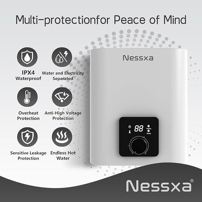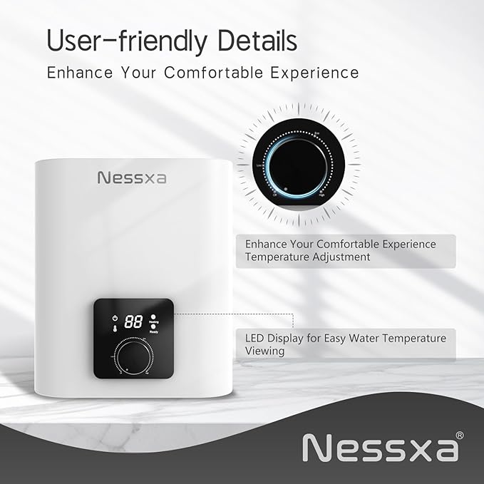 - SAVING ENERGY & TEMPERATURE CONTROL - Our under sink water heater has a temperature adjustment range of 77 ℉ -176 ℉ (25 ℃ -80 ℃). You only need to rotate the knob on the electric water heater panel according to your needs. When the water temperature in the instant hot water heater is below 77 ℉/25 ℃, the mini tank water heater will be in standby mode, maximizing energy and power savings. The adjustable thermostat allows you to set your desired water temperature, providing maximum comfort and convenience.