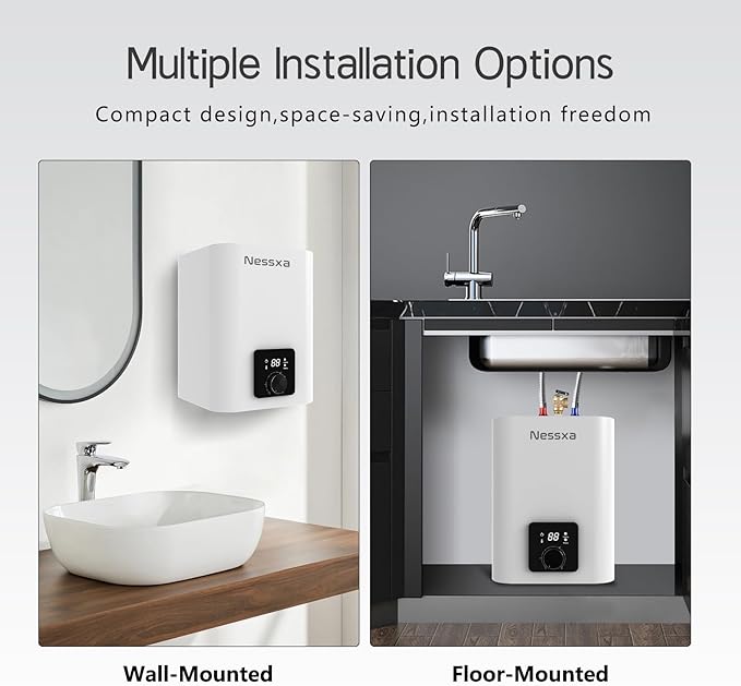 - EASY USE & SAFETY MATERIAL - With a mini tank compact design, can be wall or floor mounted under sink or counter. The exterior of the small tank water heater is made of ABS material, and the internal tank body is made of stainless steel material, achieving the separation of water and electricity, ensuring that you can safely use the point of use under sink water heater, which ensures fast heating speed of the water heater.