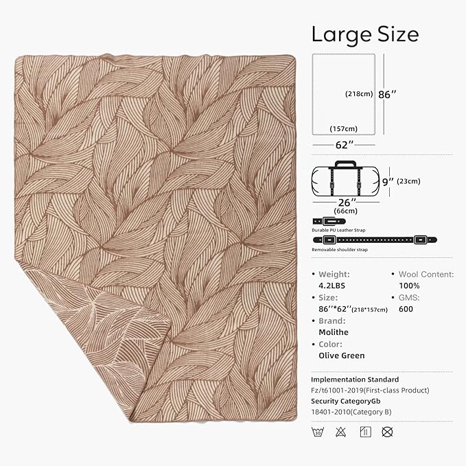 - CONVENIENT PORTABILITY - Our wool throw blanket is equipped with a premium PU strap, strong yet flexible, you can easily carry this wool blanket wherever you go, ensuring warmth and comfort at all times.