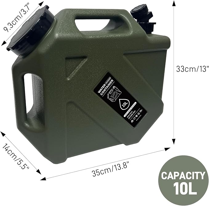 2.6 Gallon Camping Water Container with Spigot, Portable Water Jug BPA Free Water Tank, Military Green Emergency Water Storage Can for Outdoor Hiking Camping Picnic RV (10L)