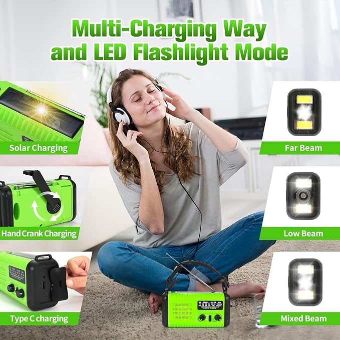 - 🔋【20,000 mAh/74000mWh Weather Radio Battery Powered】This emergency radio is equipped with a 20,000 mAh battery, which allows you to listen to the radio without worrying about the battery life, you even listen to the radio for three days without charging without any problem! It can also charge your cell phone, its built-in 20000mAh/74000mWh high-capacity battery is even better than most of the rechargeable batteries on.