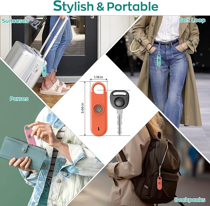 - Compact and Stylish: The police-approved rape alarm combines practicality and elegance. Weighing only 0.95 oz and as small as a key, it's easy to carry and even TSA-compliant for air travel. The included lanyard lets you easily attach it to wallets, backpacks, keys, belt loops, or suitcases. With multiple fashionable color options, it can be easily matched with different styles. It is a perfect choice for safety-conscious women who value fashion.