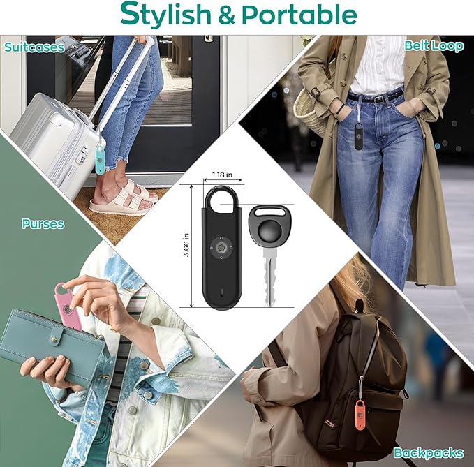 - Compact and Stylish: The police-approved rape alarm combines practicality and elegance. Weighing only 0.95 oz and as small as a key, it's easy to carry and even TSA-compliant for air travel. The included lanyard lets you easily attach it to wallets, backpacks, keys, belt loops, or suitcases. With multiple fashionable color options, it can be easily matched with different styles. It is a perfect choice for safety-conscious women who value fashion.