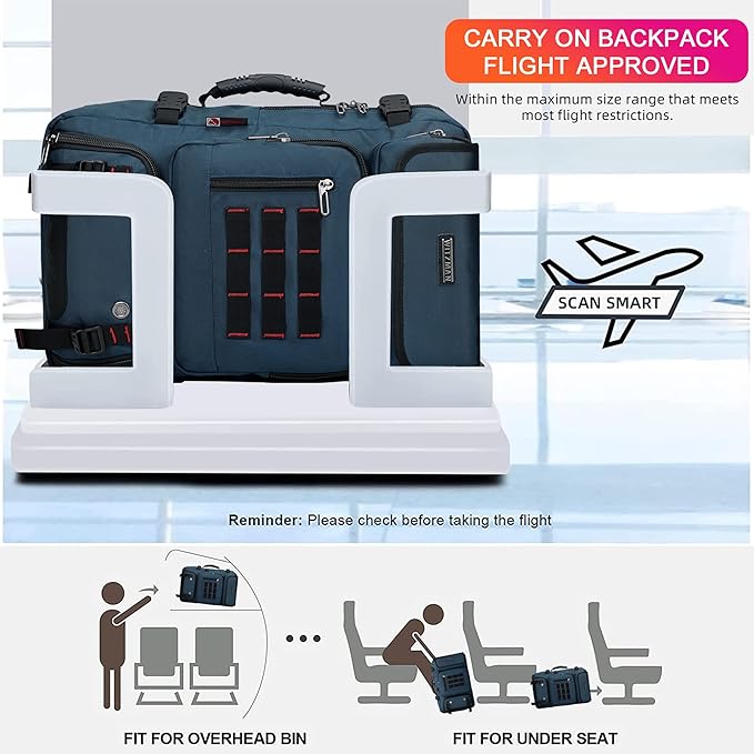- Multifunctional Carrying On Backpack: This men rucksack come with an adjustable and removable shoulder strap, can be used as a duffel bag. Versatility pocketto keep your items organized and easy to find. Suitability travel partner for men women who like international travel, camping,overnight trip.