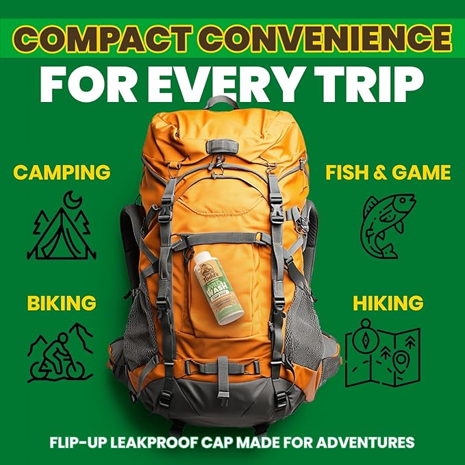- All-in-one hygiene: Enjoy the convenience of camping body wash and camping hand soap in one product, ensuring you stay clean and refreshed no matter where your journey takes you