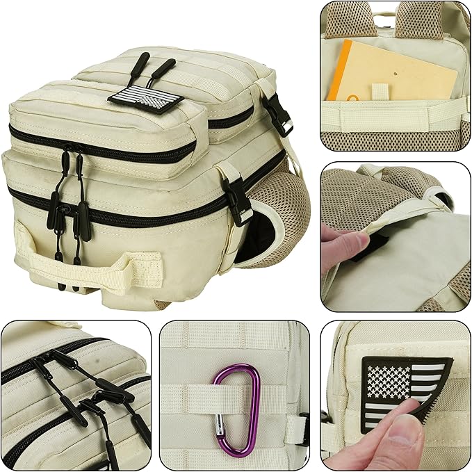 9L Mini Tactical Backpack for Men and Women, Tactical Backpack Small for Hiking, Small Tactical Bag (CreamColored)