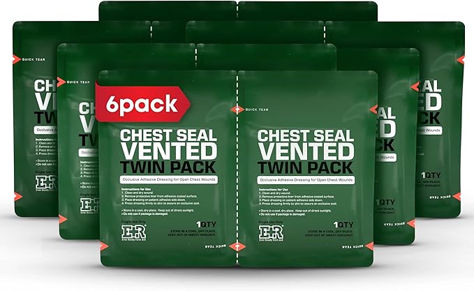- 6-PACK (12-COUNT) CHEST SEALS – Includes two packs, each containing six vented chest seals, providing a total of 12 chest seals for immediate use in treating open chest wounds.