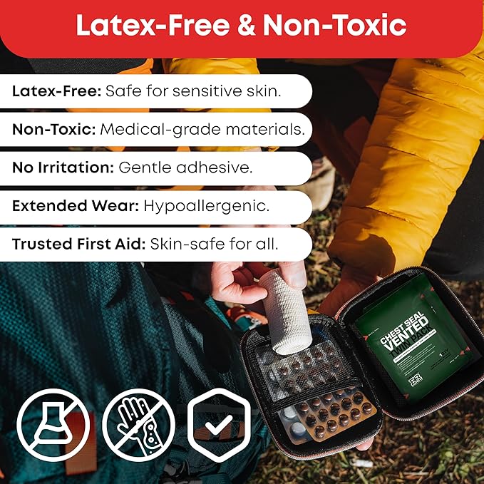 - LATEX-FREE 4-VENT DESIGN – The advanced vented design is self-regulating to allow air and blood to escape while preventing re-entry of air and debris, ideal for managing open chest injuries.