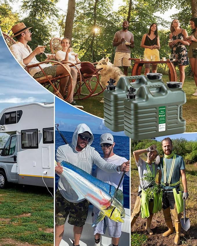 - Military Green for Outdoor Use – Designed with a rugged military green color, this water container blends seamlessly into outdoor environments and is ideal for camping, hiking, RVing, and off-grid living.