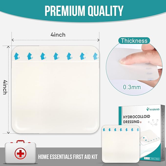 - Skin-Friendly: Hydrocolloid dressing with hypoallergenic composition, free from latex and harsh irritants.