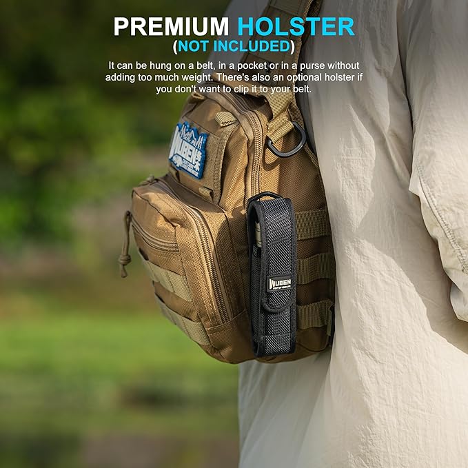 - Super Bright 6 Modes: WUBEN C3 is a new release EDC flashlight, which utilizes Germany imported P9 LED, emits bright light up to 1200 lumens and reaches nearly 588 ft. Featured with 6 adaptable light modes: High, Medium, Low, Eco, Strobe, OS(With memory function), last as long as 143 hours (Eco)