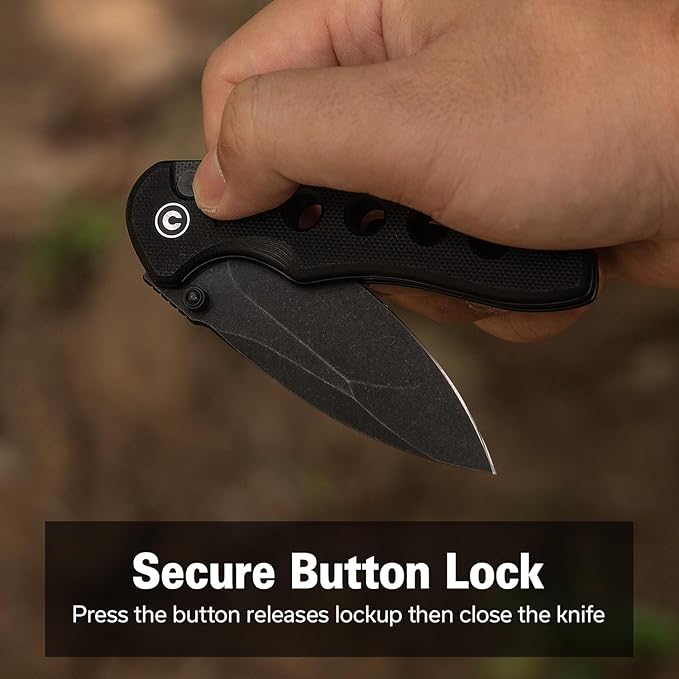 - Button Lock Mechanism: This folding knife features a reliable button lock to ensure safe and secure blade closure