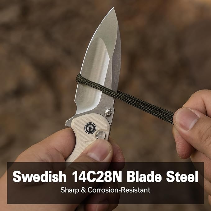 - Swedish 14C28N Blade: Made from premium 14C28N steel, this pocket knife offers exceptional edge retention and corrosion resistance