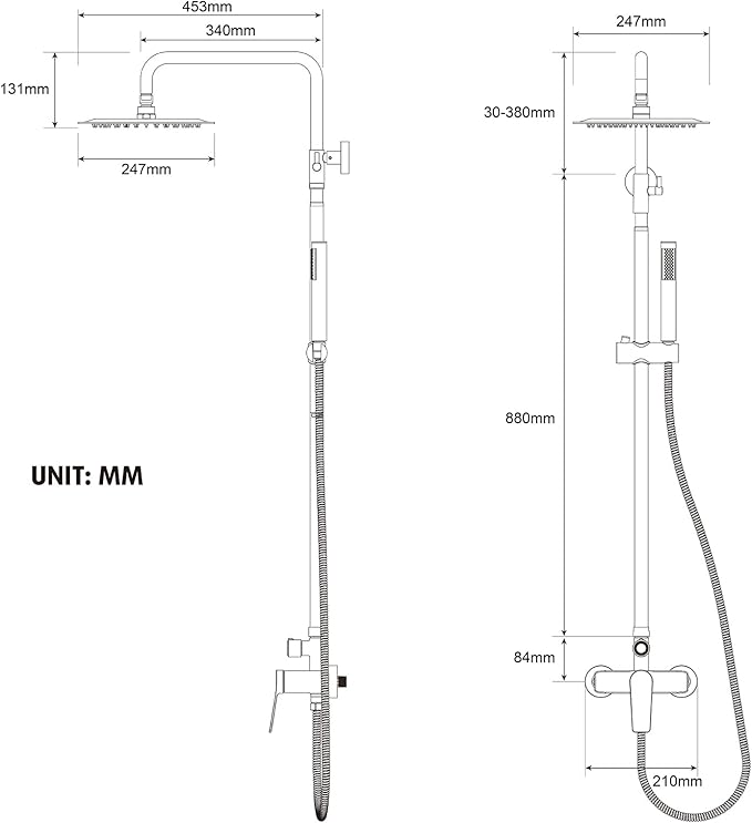 - Dual Showerhead Combo: Features an 10-inch overhead rain shower and a flexible handheld sprayer with high-pressure water flow, ideal for quick outdoor showers
