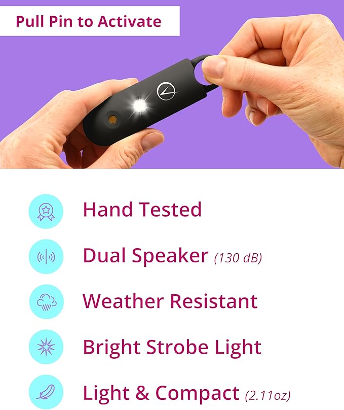 - Equipped with two loud dynamic speakers and a powerful strobe light, this safety whistle keychain helps scare off threats and alert people around you. Among all self defense key chains women, it stands out with its high-volume sound and visibility, making it a must-have self defense running.