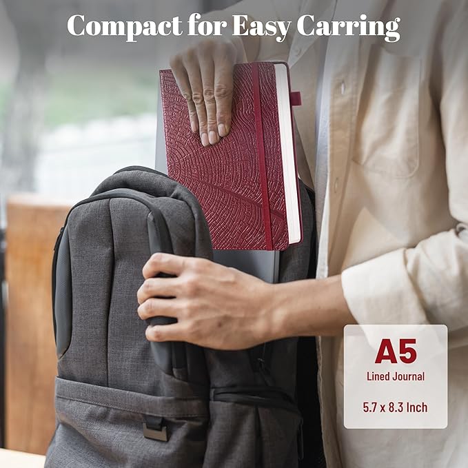 - ššš šš§ ššššš”šš« ššØš®š§š ššØš®š«š§šš„:The cover features a tree growth ring pattern, lightly embossed onto cruelty-free vegan leather. The textured cover adds visual interest and sets it apart from plain designs. The tree ring pattern represents personal growth, accomplishments, and the challenges along the way. 5.7 Ć 8.3 inches, compact and easy to carry