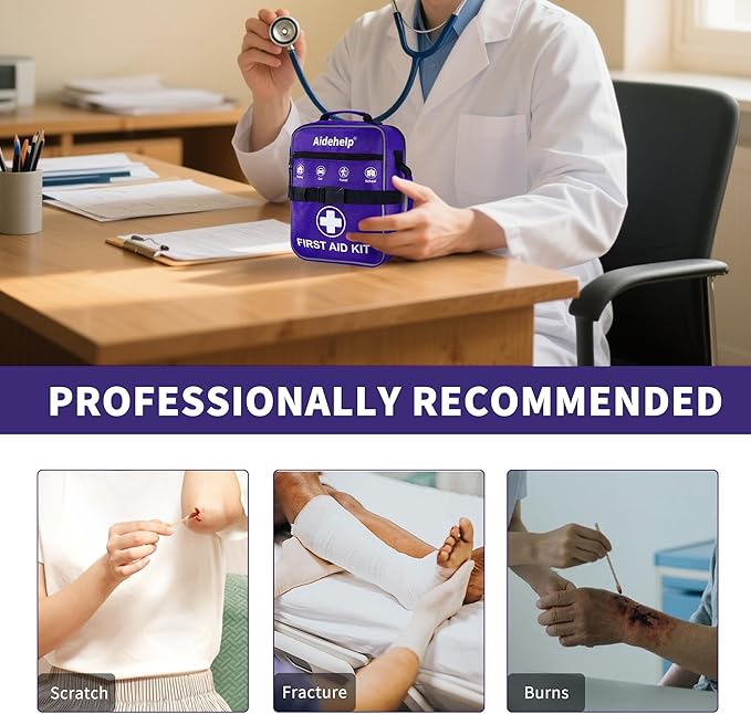520 Pieces Premium First Aid Kit - Large Emergency Medical Kit for Survival, Car, Home, Travel, Camping, Backpack, Hiking, School (Purple)