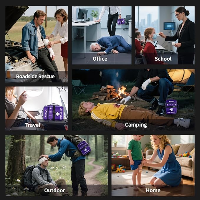 - READY FOR EVERY EMERGENCY — Whether at home, on the go, or venturing into the wild, this first aid kit is your must-have safety partner. Keep it in your car, take it on trips, or bring it along for hiking, camping, and all outdoor adventures. Stay prepared to tackle emergencies with confidence, protecting yourself and your loved ones wherever you are.