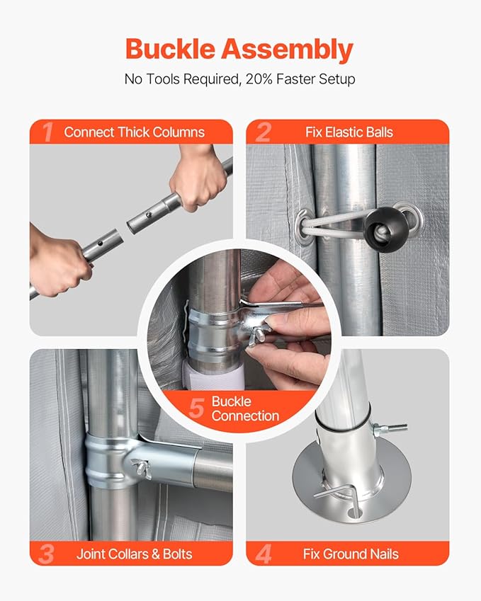 - Buckled Easy Assembly: This outdoor portable storage shelter can be quickly and easily assembled using buckle connectors with T-joints and cross joints, requiring no tools. With detailed assembly instructions, it ensures a fast and straightforward one-on-one connection.