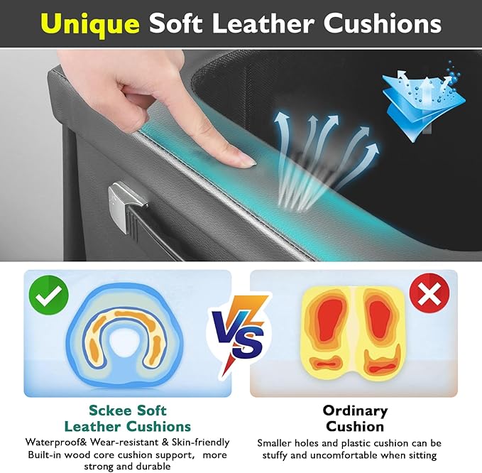 - 🏕️【Comfort and Sturdy】Our newly upgraded foldable toilet is made of sturdy density board and high-quality leather, which surprisingly sturdy and soft once set up. Just wipe with water to make it as good as new. Use it just like any other bucket-style portable camping toilet. If you're keen to avoid communal facilities or planning to go camping regularly, our camp toilet is a sensible option. It will make your entire use of the camp toilet more comfortable. It holds up to 440 lbs,suitable for the whole family!